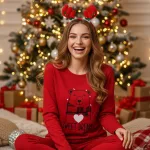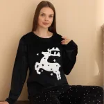 Pamuklu-Süet Yılbaşı Pijama Takımı