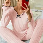 Bürümcük Örme Fırfırlı Bağlamalı Kadın Sabahlık Pijama Takımı