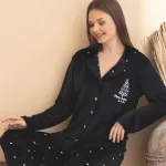 Kadife Snowy Tree Düğmeli Kadın Pijama Takımı