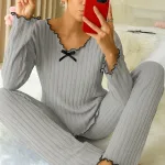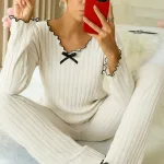 Pamuklu Fiyonk Detaylı Pijama Takımı