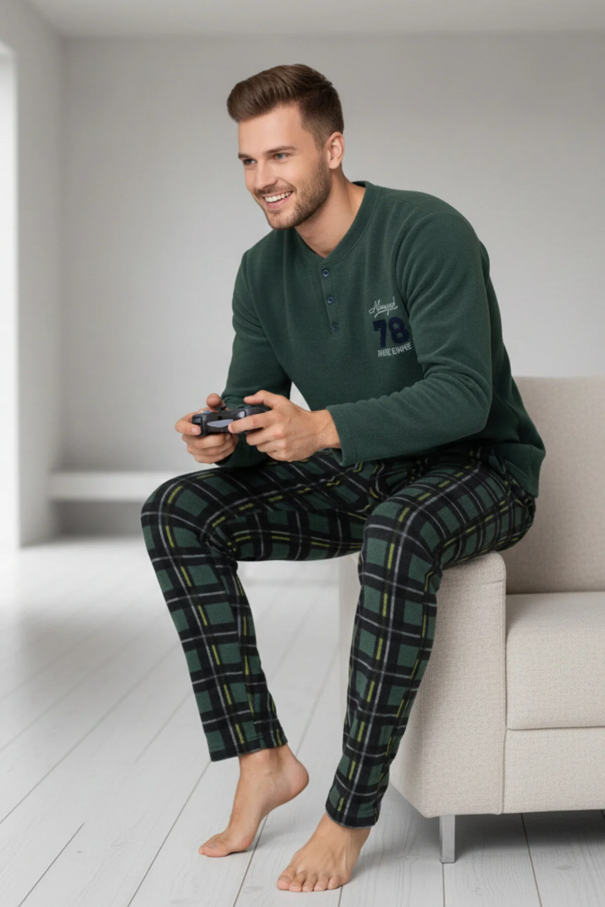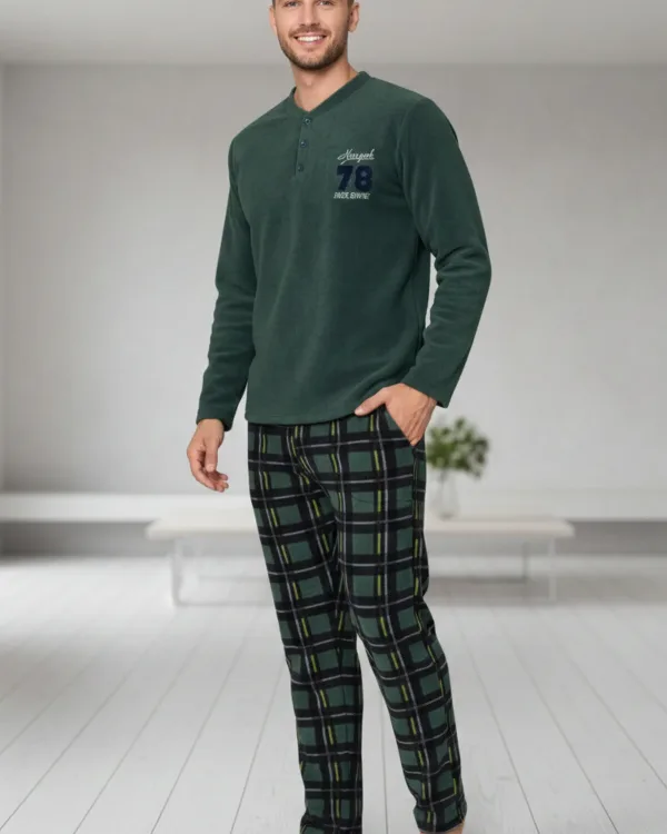 Uzun kollu tasarımı ile mevsim geçişlerinde ve serin gecelerde konforlu bir uyku deneyimi sunar; Type 1 yıkama talimatına uygun şekilde kolayca temizlenebilir, böylece pijama takımınız uzun süre ilk günkü gibi kalır; Bisiklet yaka tasarımı, rahat bir giyim deneyimi için idealdir ve boynunuzu nazikçe sarar; Standart kol yapısı ile hareket özgürlüğünüz kısıtlanmaz, rahatça uyuyabilirsiniz; Boru paça kesimi sayesinde modern ve şık bir görünüm elde ederken, aynı zamanda rahat bir kullanım sunar; %100 polyester materyal bileşeni dayanıklılığı artırırken, kolay bakım imkanı sağlar; Dokuma kumaş tipi, ürünün formunu korumasına yardımcı olur ve dayanıklılığını artırır; Armürlü deseniyle şık ve zamansız bir stil yaratırken, polar dokuma tipi ekstra sıcaklık ve yumuşaklık sunar.