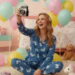 Pamuklu Kuzu Desenli Düğmeli Pijama Takımı
