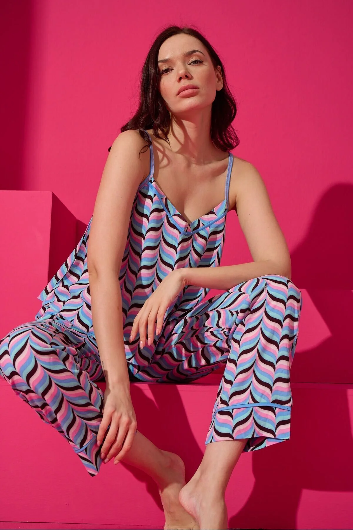 Dokuma kumaş yapısı sayesinde, uzun süreli kullanımlarda bile formunu koruyan ve konforlu bir deneyim sunan pijama takımı; Standart boy kesimi ile her vücut tipine uyum sağlayarak rahat bir uyku ortamı yaratır; Fitted kalıbı sayesinde vücudu saran ancak sıkmayan bir yapıya sahip olup, hareket özgürlüğünüzü kısıtlamaz; Type 1 yıkama talimatına uygun şekilde kolayca temizlenebilir; böylece pijama takımınızın ilk günkü gibi kalmasını sağlar; %100 pamuk materyal bileşeni ile cildinize nefes aldırır ve yumuşak bir dokunuş sunarak rahat bir uyku deneyimi yaşatır.