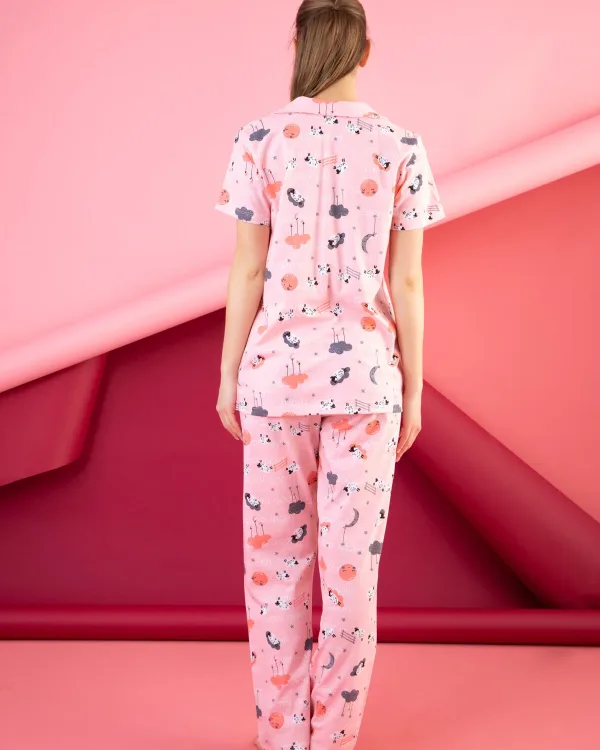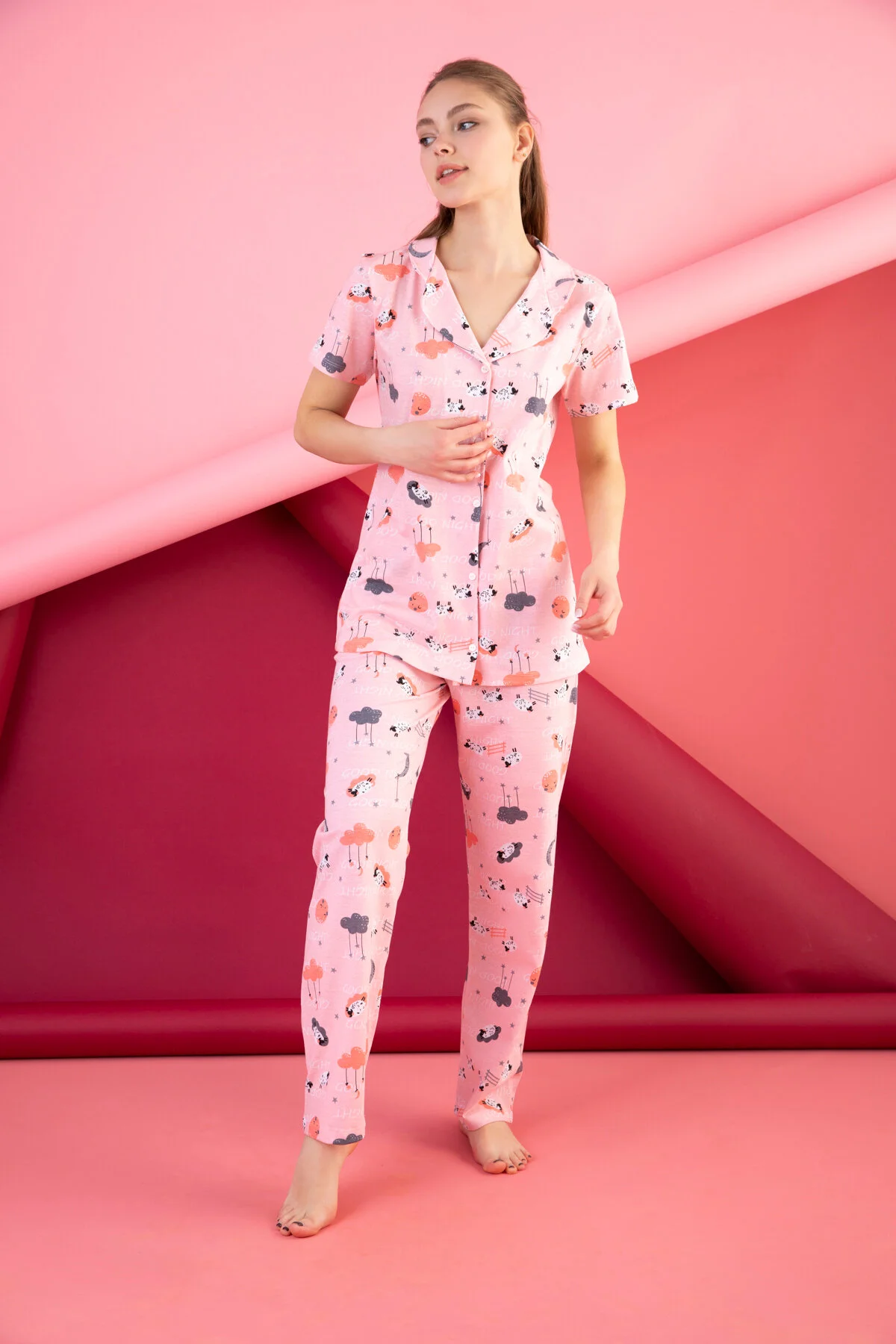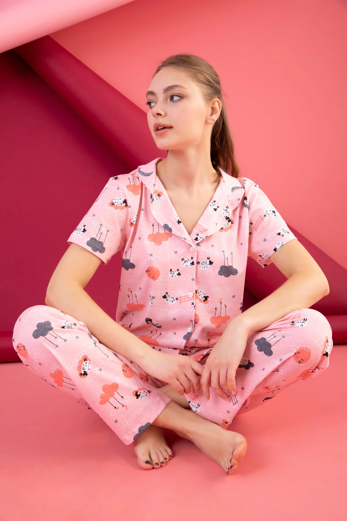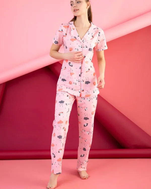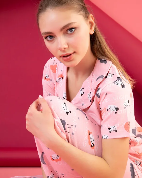 Rahat kesimi ile günlük kullanım için ideal olan bu pijama takımı, standart kalıbıyla vücut hatlarını saran ancak sıkmayan bir yapıdadır.; Boru paça tasarımıyla modern ve şık bir görünüm sunarken hareket özgürlüğünüzden ödün vermezsiniz.; Yıkama talimatlarına uygun şekilde bakım yaparak pijamanızın ilk günkü gibi kalmasını sağlayabilirsiniz; böylece her kullanımda aynı rahatlığı hissedersiniz.; Lounge veya ev ortamında tercih edebileceğiniz bu takım, baskılı deseniyle göz alıcı bir stil sunarken aynı zamanda sade tasarımıyla da her zaman moda olan tarza sahiptir.