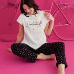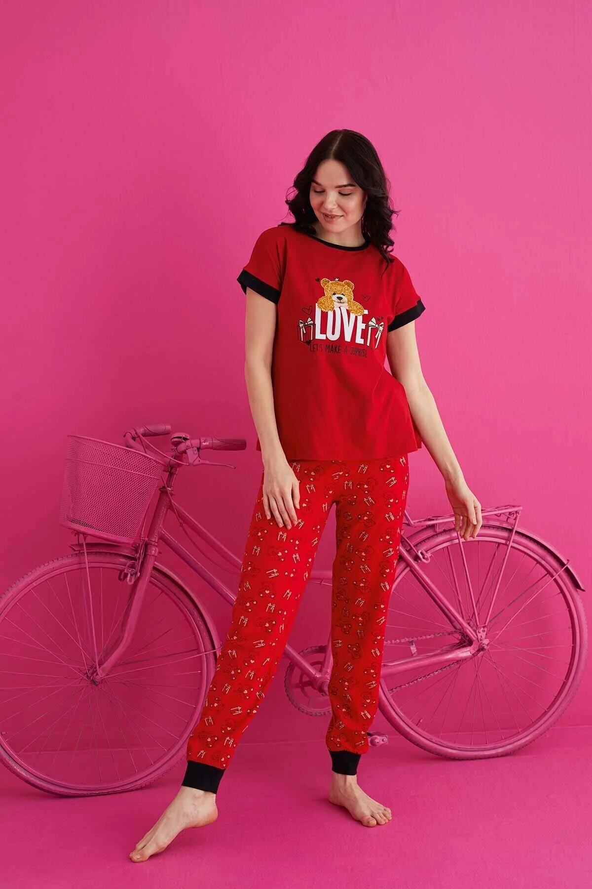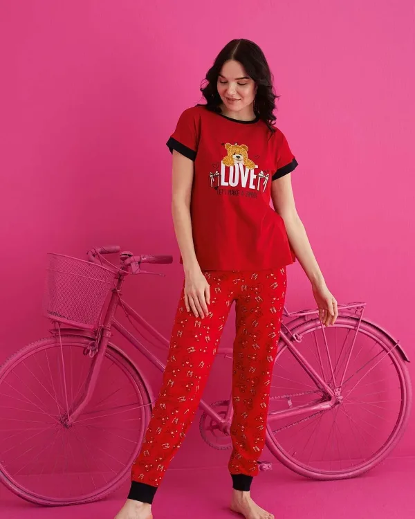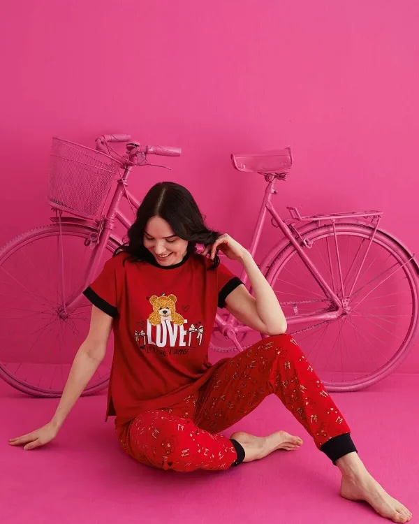 Uzun paça boyu ve uzun boy tasarımı ile rahat bir kullanım sunar; Düz kesimi sayesinde sade ve şık bir görünüm sağlar; Fitted kalıbı ile vücut hatlarınıza mükemmel uyum sağlar; Dokuma kumaş tipi, dayanıklılığı ve konforu bir arada sunar; %95 pamuk içeriği ile cildinize nefes aldırırken, %5 elastan esnekliği artırır; Type 1 yıkama talimatına uygun şekilde kolayca temizlenebilir; Kısa kol boyu, hareket özgürlüğünüzü kısıtlamaz; Lounge ve ev ortamında ideal konfor için tasarlanmıştır; Homewear koleksiyonunun bir parçası olarak ev giyiminde şıklığı ve rahatlığı ön planda tutar.