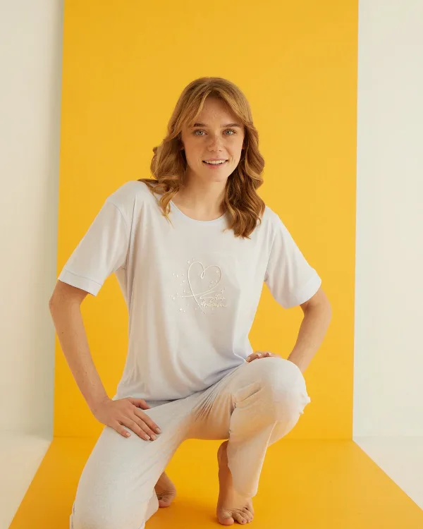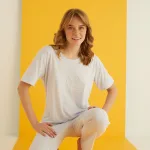 Yumuşak tasarımı ile rahat bir kullanım sunar ve günlük giyimde konforlu bir deneyim sağlar; viskon lycra materyal bileşeni sayesinde dayanıklılık ve uzun ömürlü kullanım vaat eder; Düz kesimiyle sade ve şık bir görünüm elde edilir, her türlü ev ortamına uyum sağlar; Regular boy kesimiyle vücut hatlarınıza uyum sağlayarak rahat bir uyku deneyimi sunar; Günlük kullanım için idealdir; evde rahatça vakit geçirmek istediğiniz her an yanınızda; Type 1 yıkama talimatına uygun şekilde kolayca temizlenebilir; böylece hijyenik kalır.