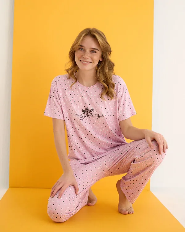 Yumuşak tasarımı ile rahat bir kullanım sunar ve günlük giyimde konforlu bir deneyim sağlar; polyester lycra materyal bileşeni sayesinde dayanıklılık ve uzun ömürlü kullanım vaat eder; Düz kesimiyle sade ve şık bir görünüm elde edilir, her türlü ev ortamına uyum sağlar; Regular boy kesimiyle vücut hatlarınıza uyum sağlayarak rahat bir uyku deneyimi sunar; Günlük kullanım için idealdir; evde rahatça vakit geçirmek istediğiniz her an yanınızda; Type 1 yıkama talimatına uygun şekilde kolayca temizlenebilir; böylece hijyenik kalır.