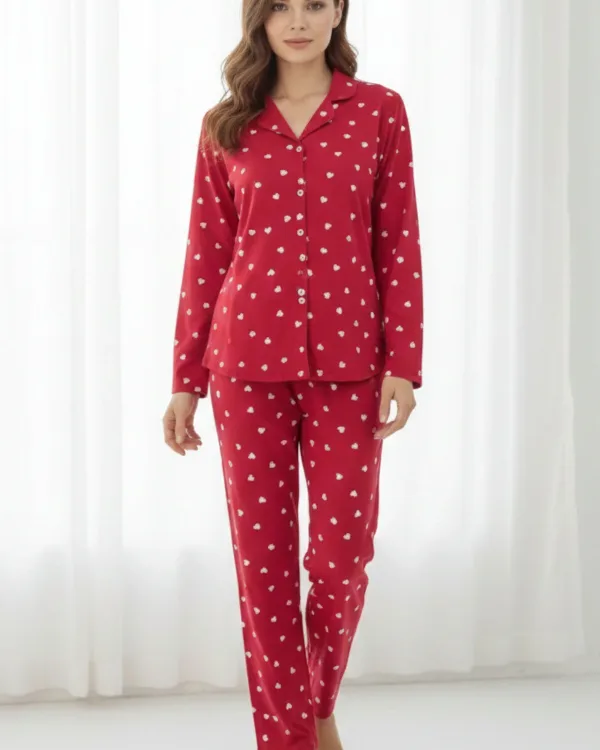 Pamuklu ve likralı dokusuyla gün boyu ve gece boyunca üstün konfor sunan düğmeli kadın pijama takımı, nefes alabilen yapısı sayesinde cildinizin rahatça hava almasını sağlar; esnek kumaşı vücudunuza nazikçe uyum sağlarken hareket özgürlüğü sunar, düğmeli üst tasarımı hem şık hem de kullanışlı bir görünüm kazandırır, yumuşak dokusu ciltte ipeksi bir his bırakır ve dört mevsim kullanım için ideal olan bu takım, evde şıklık ve rahatlığı bir arada isteyenler için mükemmel bir tercihtir.