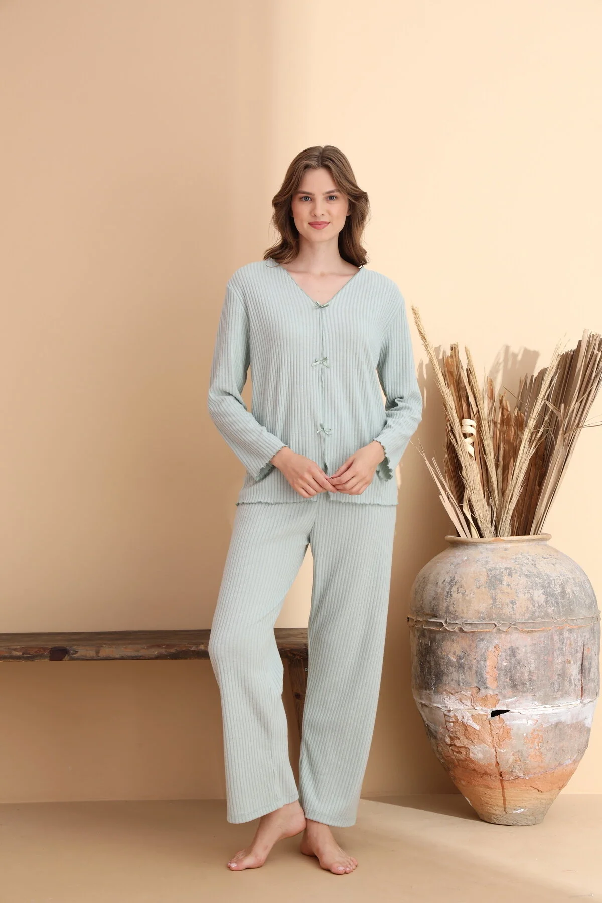 Yumuşak tasarımı ile rahat bir kullanım sunar ve günlük giyimde konforlu bir deneyim sağlar; Viskon Lycra materyal bileşeni sayesinde dayanıklılık ve uzun ömürlü kullanım vaat eder; Özel kesimiyle sade ve şık bir görünüm elde edilir, her türlü ev ortamına uyum sağlar; Regular boy kesimiyle vücut hatlarınıza uyum sağlayarak rahat bir uyku deneyimi sunar; Günlük kullanım için idealdir; evde rahatça vakit geçirmek istediğiniz her an yanınızda; Type 1 yıkama talimatına uygun şekilde kolayca temizlenebilir; böylece hijyenik kalır.