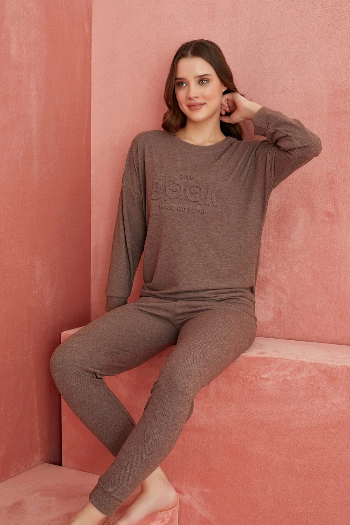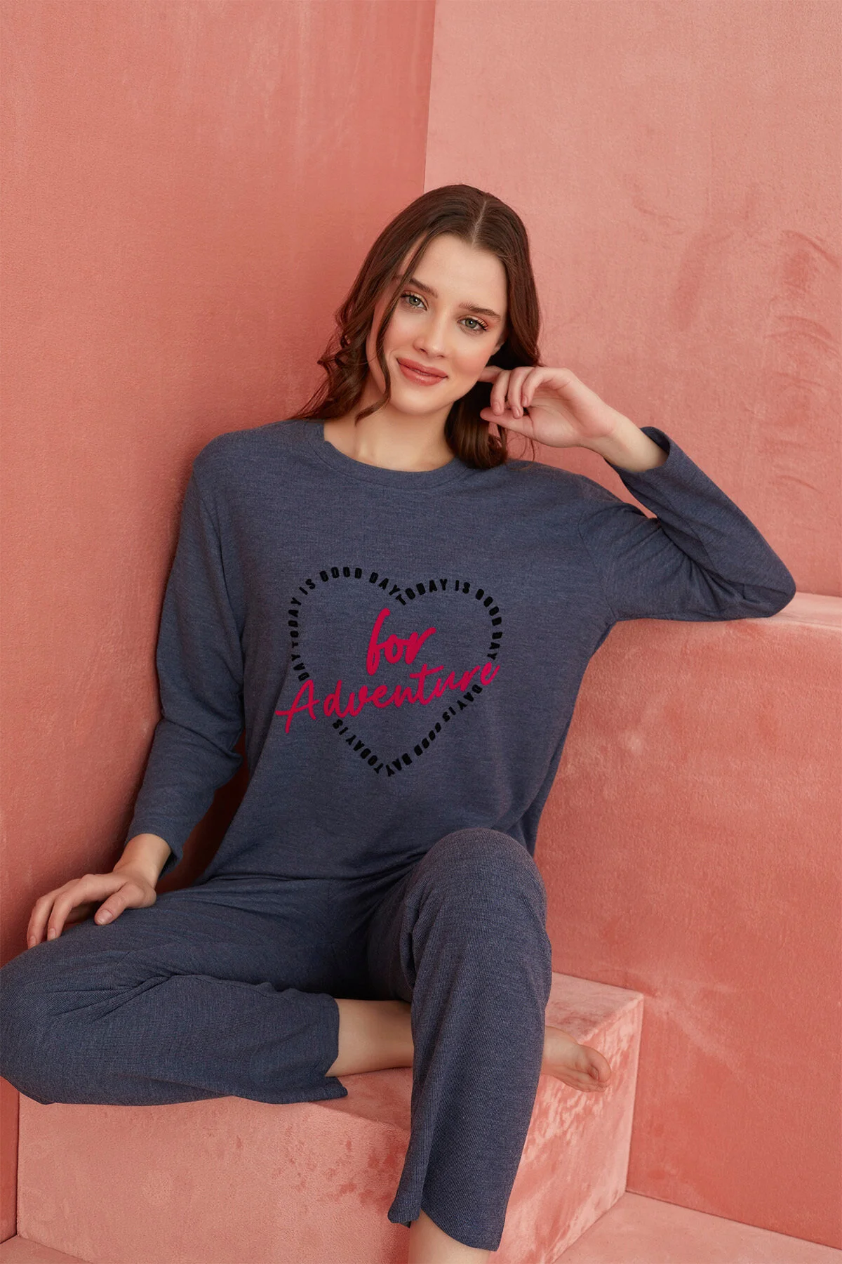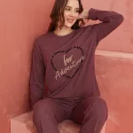 Desenli Uzun Kollu Örme Pijama Takım