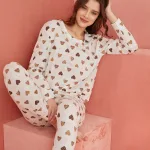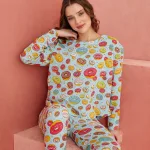 Desenli Uzun Kollu Kadın Pijama Takımı