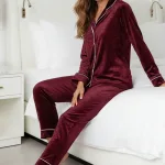 DÜĞMELİ KADİFE PİJAMA TAKIM