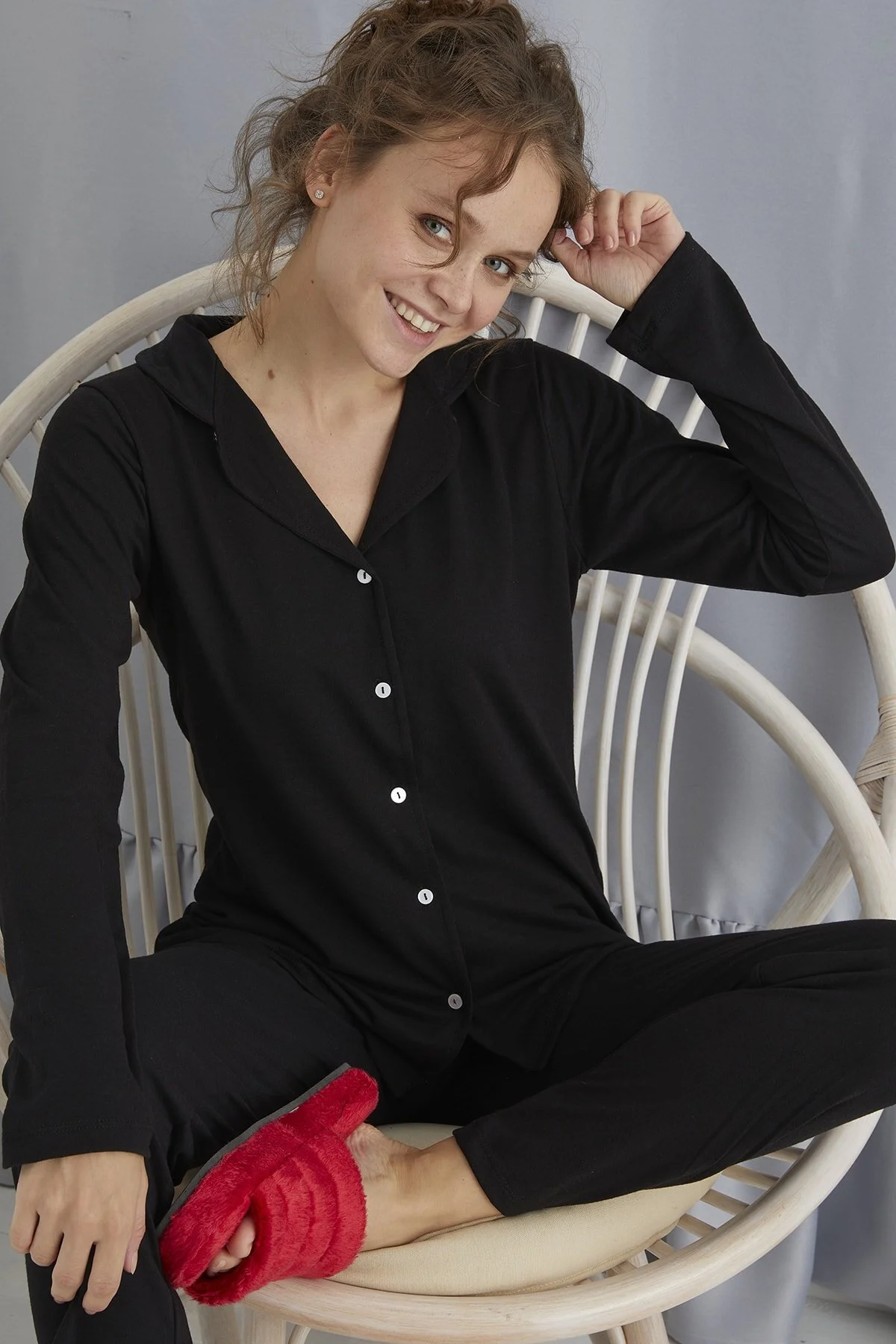 Düğmeli Kadın Pijama Takımı